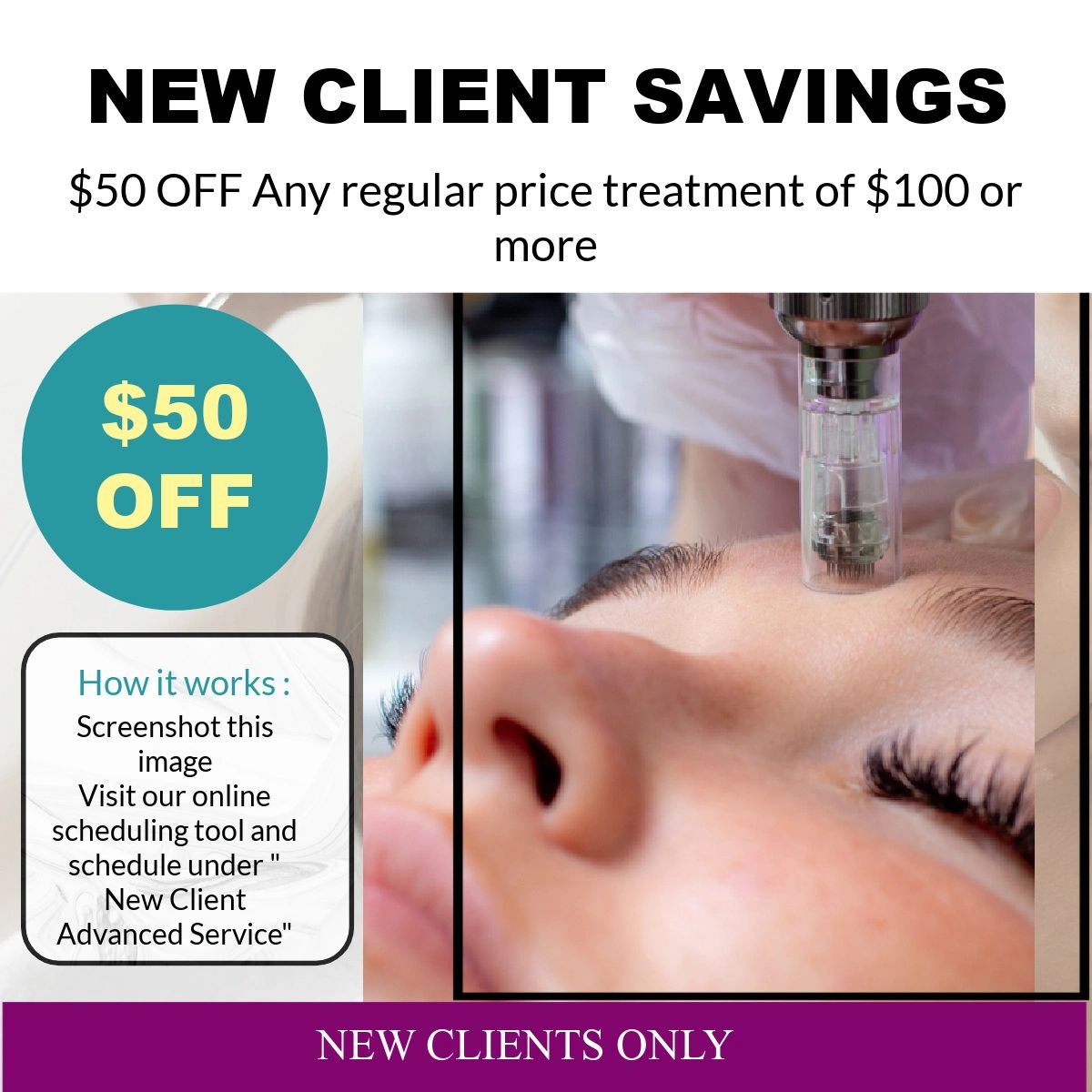 Looking for advanced rejuvenation but not quite sure where to start? Look no further! We now offer ALL first-time clients a consultation plus their first-time skincare treatment for $50 off any treatment $100 or more.
